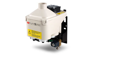 Ultrasonic humidifiers are made up of a small water storage tank with piezoelectric transducers installed at the bottom. The surface of the transducer vibrates at very high speed (1.65 million times a second), thus generating a column of very fine water droplets, with a diameter of around 5 µm. A light forced air stream then carries the mist produced into the room. The built-in electronic board ensures precise control of unit operation and humidity production, with a complete and intuitive user interface. This product is available in two sizes: the 0.5 l/h version, whose compact size makes it ideal for installation on fan coils, and the 1.0 l/h version, ideal for more general applications.